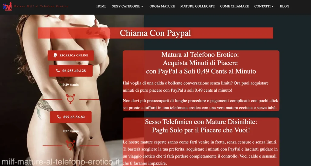 Caratteristiche Principali del sito web Mature al telefono Erotico